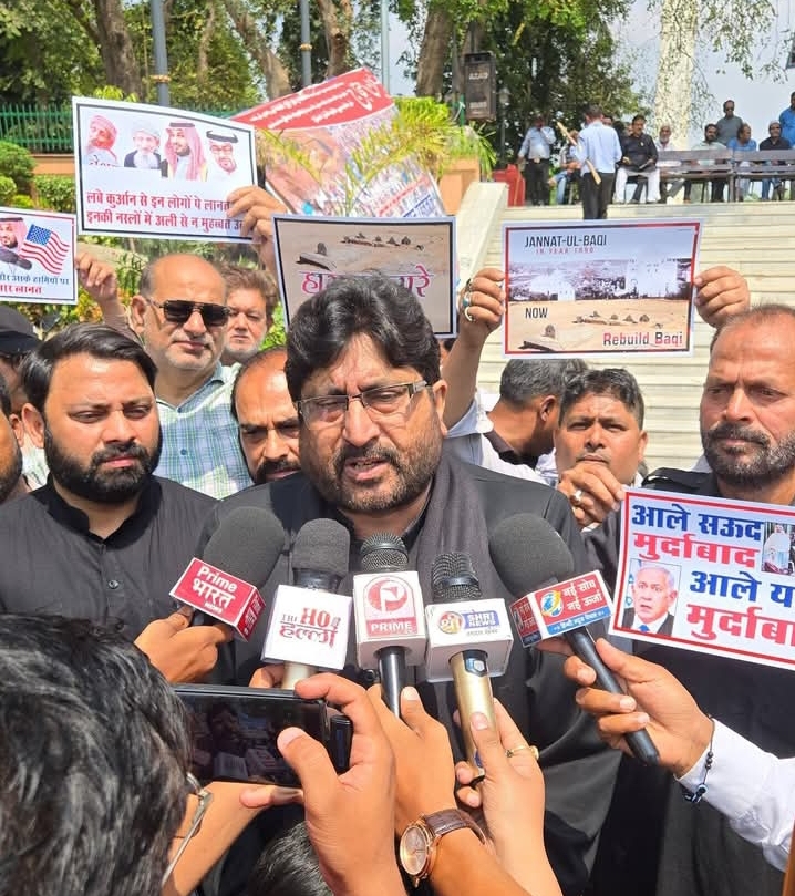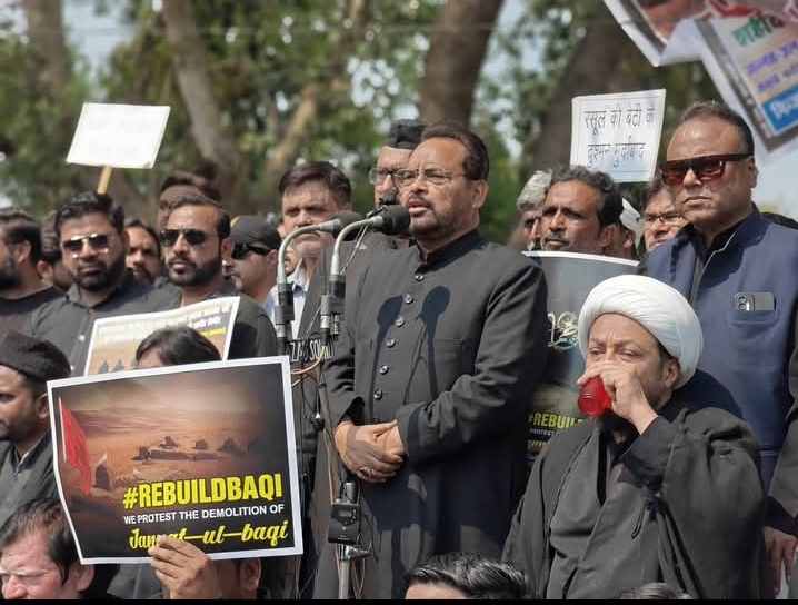 लखनऊ : मौलाना यासूब अब्बास की ओर से सऊदी अरब हुकूमत के विरोध में जन्नतुल बक़ी के कब्रिस्तान मदीने में रसूल-ए-इस्लाम की इकलौती बेटी जनाबे फातिमा और इमामों के रौज़ों को ध्वस्त किये जाने के विरोध में शहीद स्मारक लखनऊ पर एक विशाल विरोध प्रर्दशन आज दिनांक 28 मार्च 2026 को आयोजित हुआ जिसमें उलमा, खुतबा, जाकरीन, मातमी अंजुमनों के लोगों और कौमी संस्थाओं से जुड़े लोगो ने अपने अपने विचार व्यक्त किये और साउदी हूकूमत के ख़िलाफ़ अपने ग़म व गुस्से का इज़्हार किया। इस मौके पर लोगों ने अपने घरों पर काले परचम व हाथ पर काली पट्टी बांध कर अपना एहतिजाज दर्ज किया।